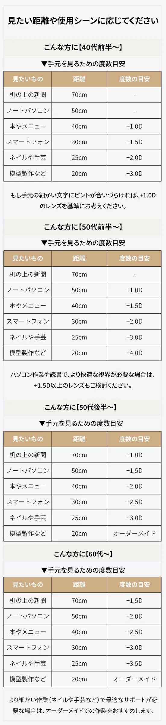 ※近視は「マイナス(−)」、遠視や老眼は「プラス(+)」が数字の前につきます。