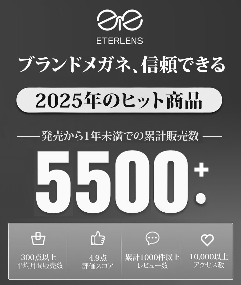 Eterlensが提案するのは、遠・中・近の視点をスムーズに切り替えられる多焦点設計の老眼鏡。日常からビジネスシーンまで幅広く活躍します。シンプルなスクエアデザインが、知的でモダンな印象を演出。