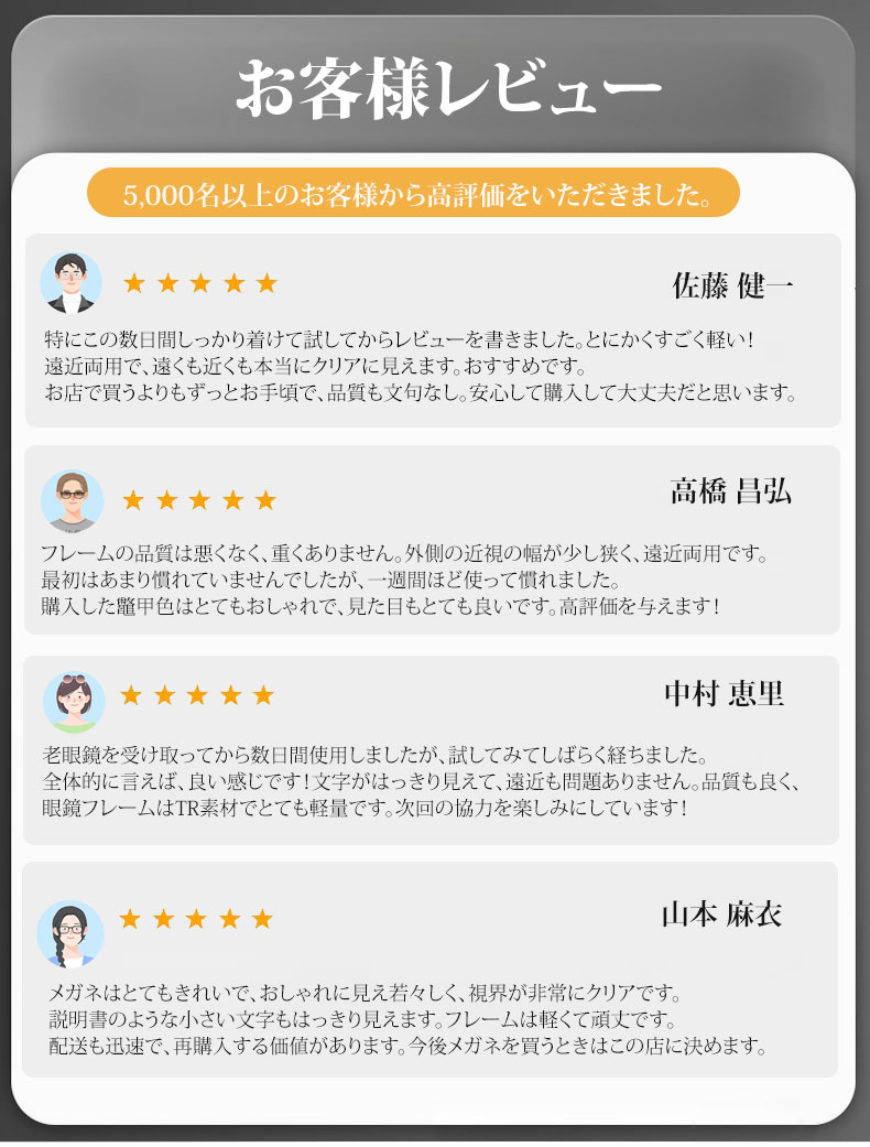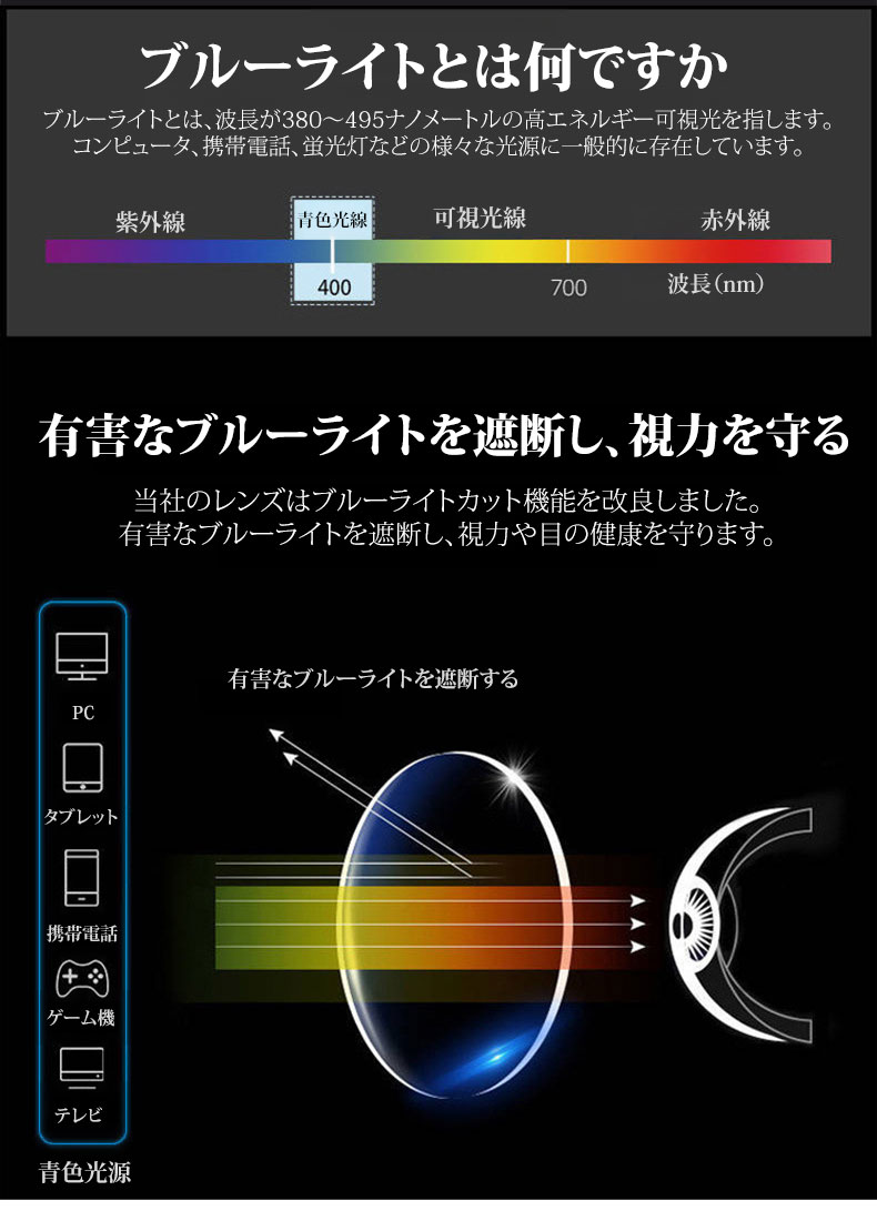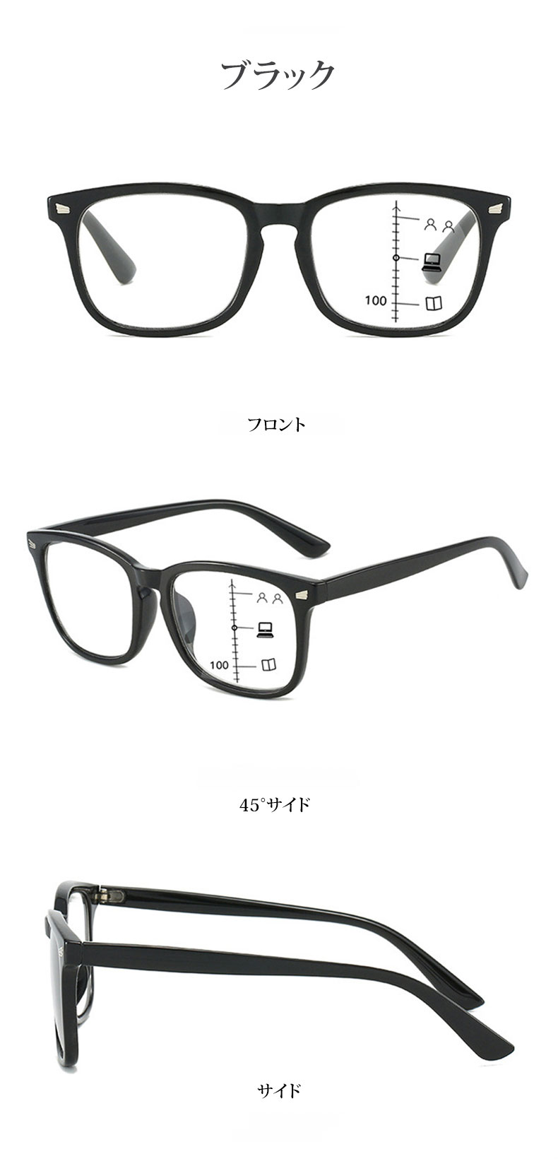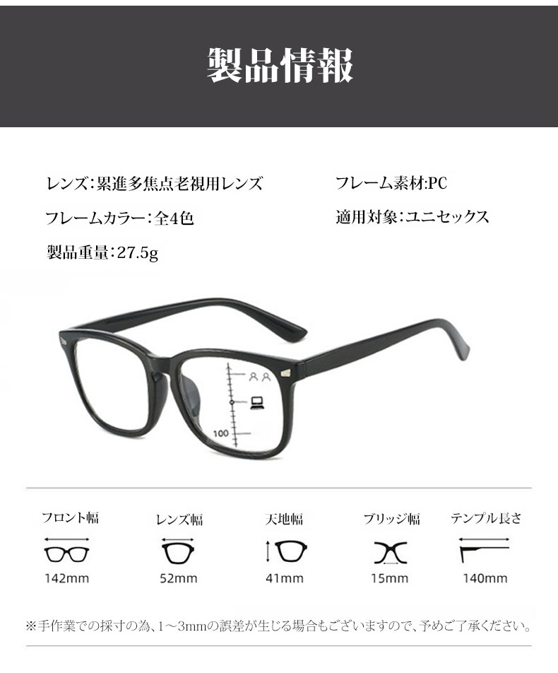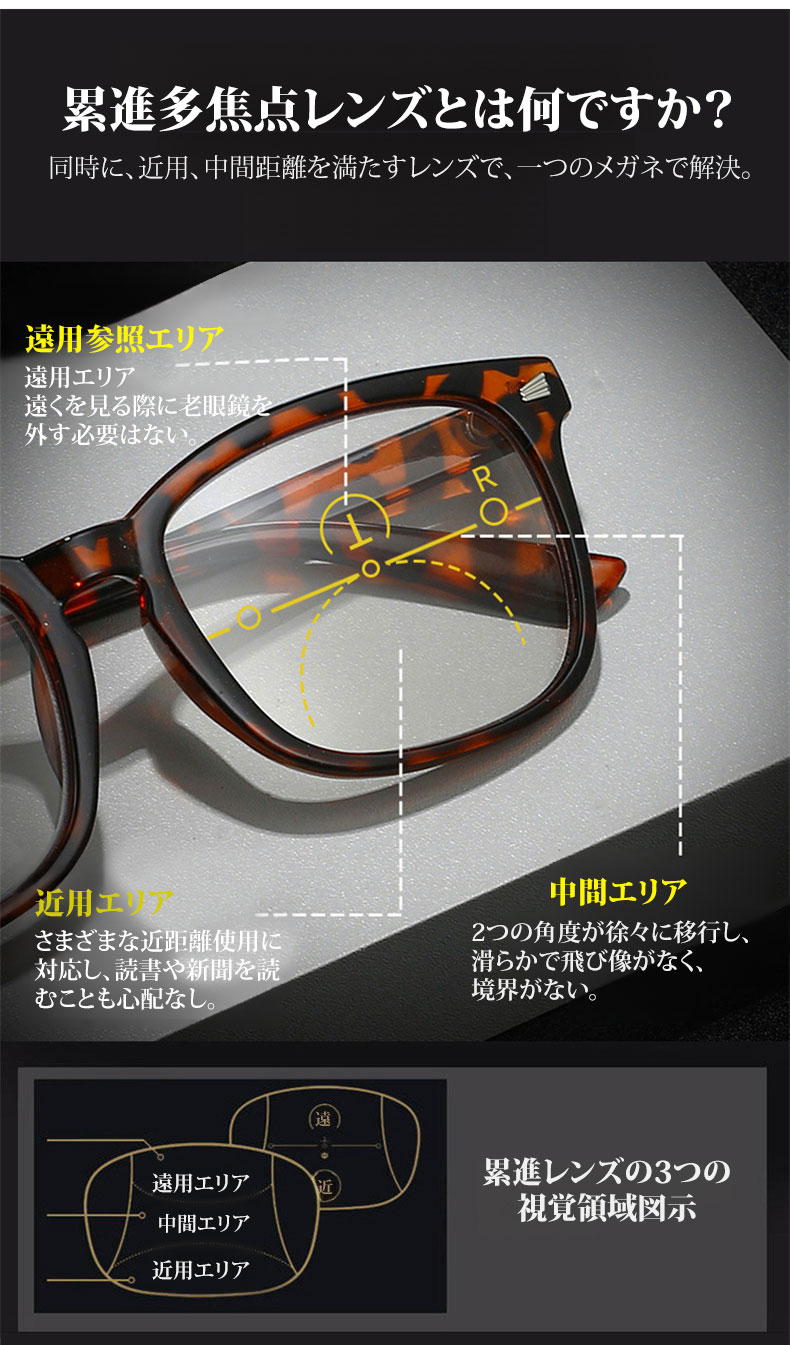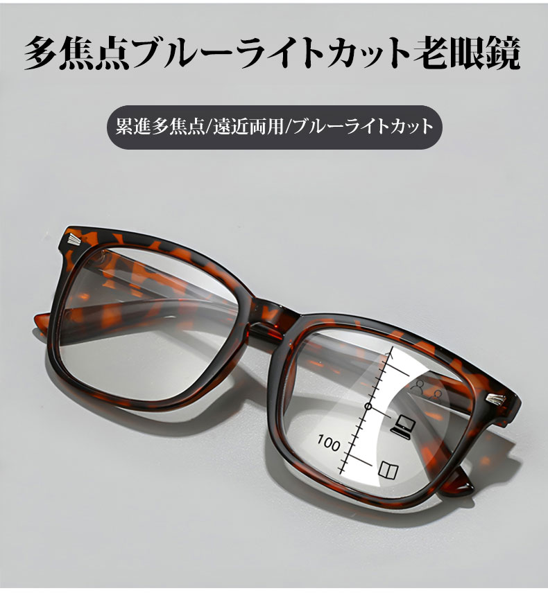 Eterlens 遠近両用累進多焦点ブルーライトカットビッグフレーム老眼鏡