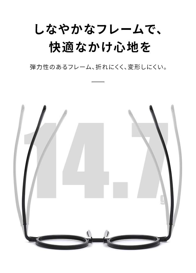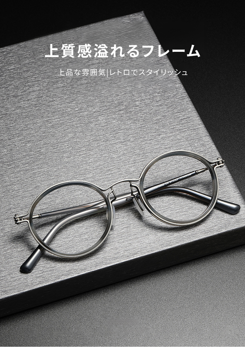 【時の円環・遠近両用】Eterlens 14.7g 超軽量調光メガネ | ブルーライトカット丸メガネ 度付き | 鯖江風レトロなボストンフレーム・男女兼用