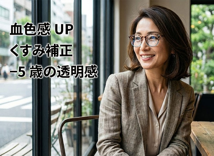多色展開のフレームが、コーディネートのアクセントに。ナチュラルスタイルにもシックな装いにも馴染むデザインで、オンオフ問わず活躍します。