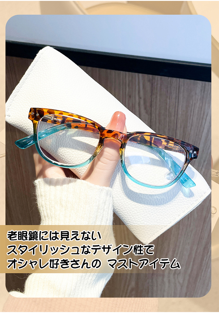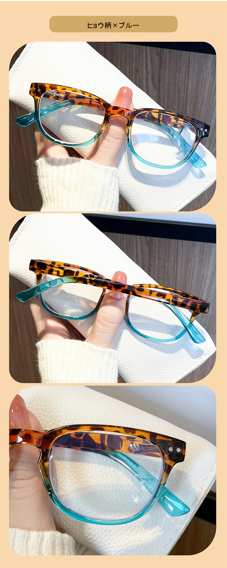 【遊び心あふれる】Eterlens 老眼鏡 "アクア・ディップ" | 定番のべっ甲柄をカラーで遊ぶ | ブルーライトカット バネ丁番 ウェリントン メンズ レディース