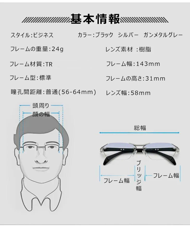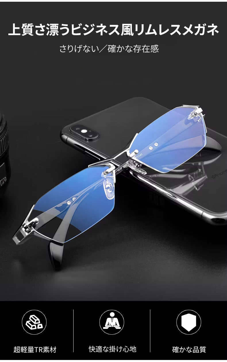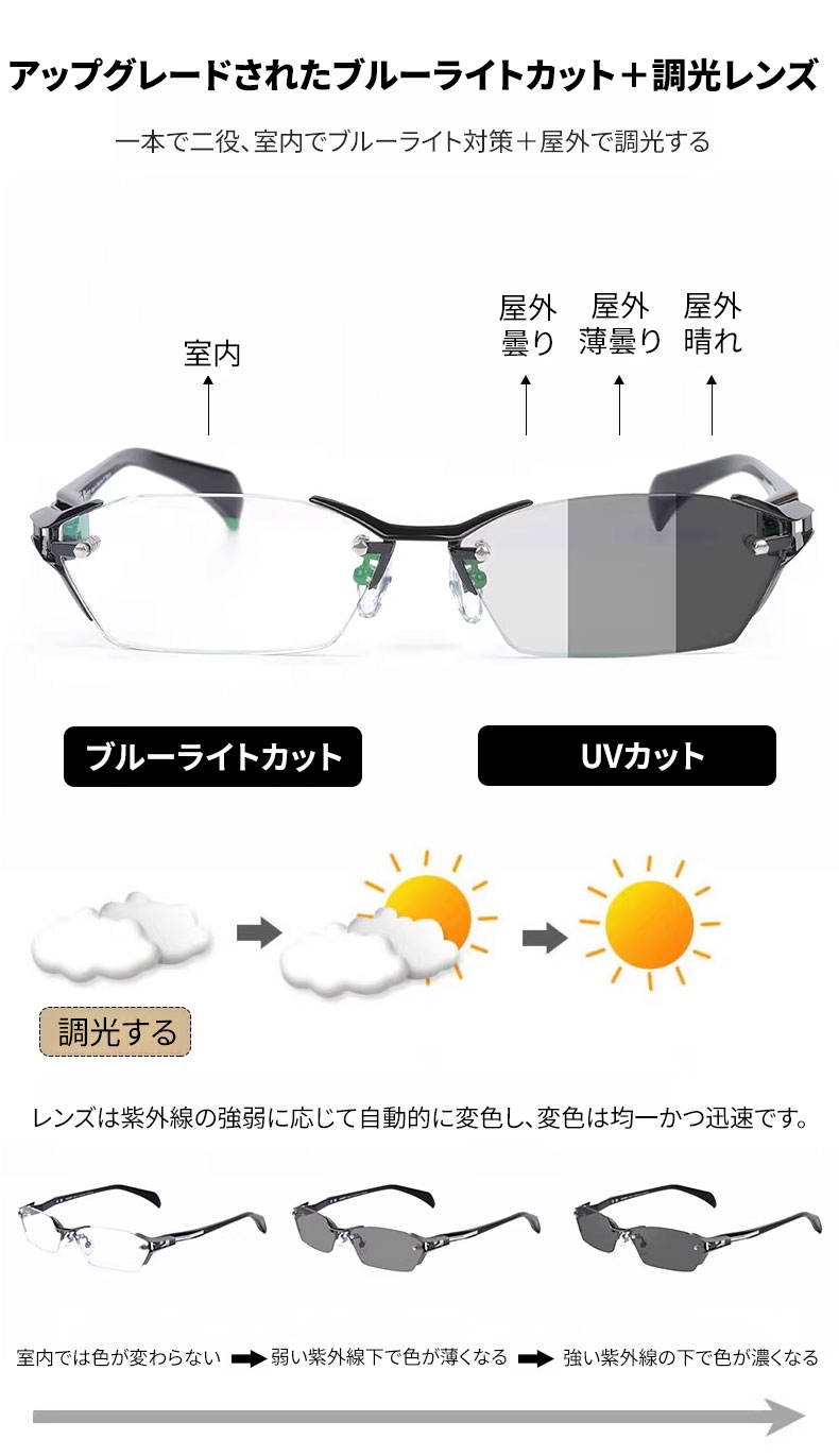 Eterlens ブルーライトカット調光機能付きリムレスリーディンググラス