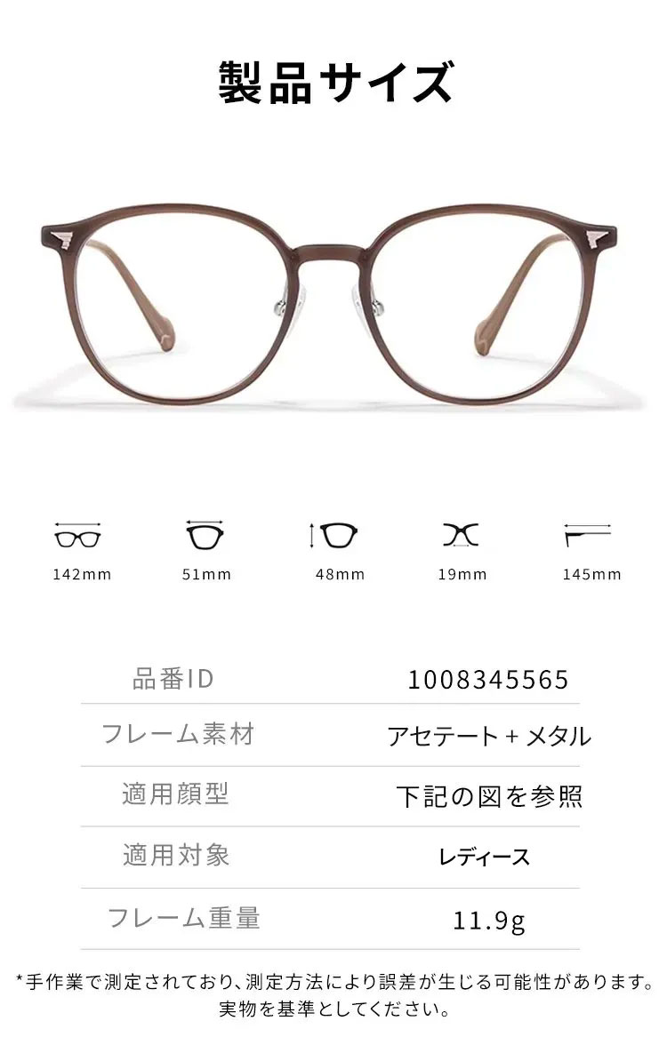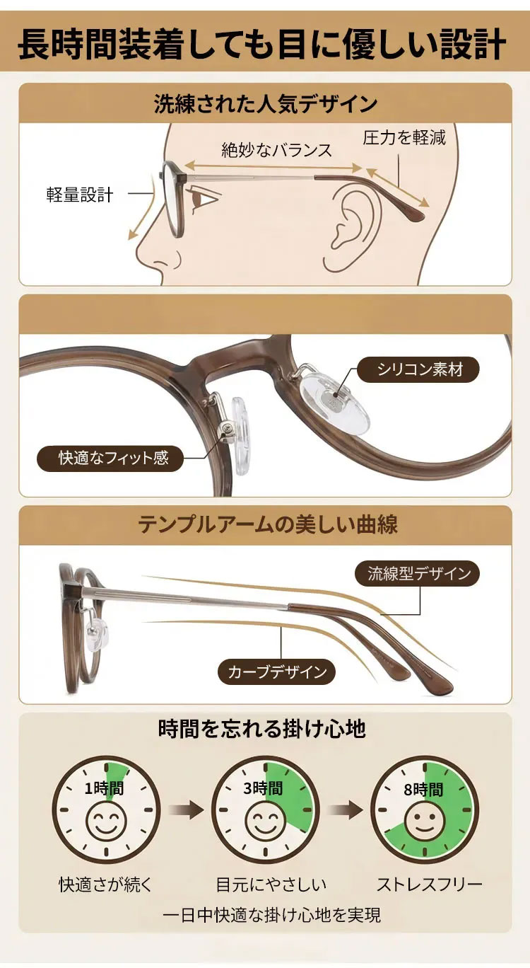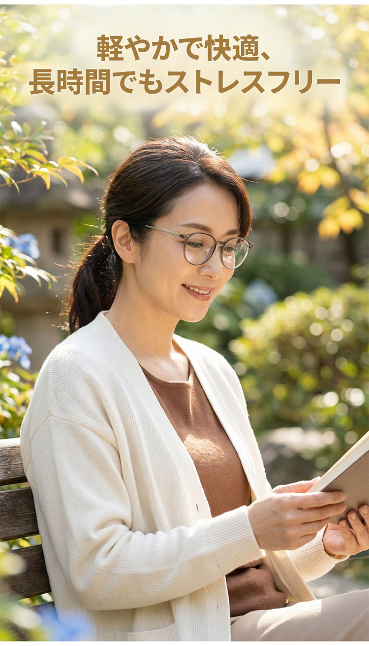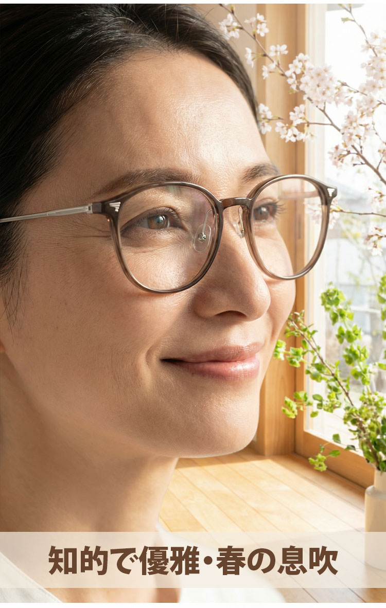11.9g軽量の老眼鏡|透明感ブラウンのラウンド風フレーム|ブルーライトカット|Eterlens
