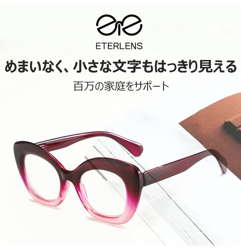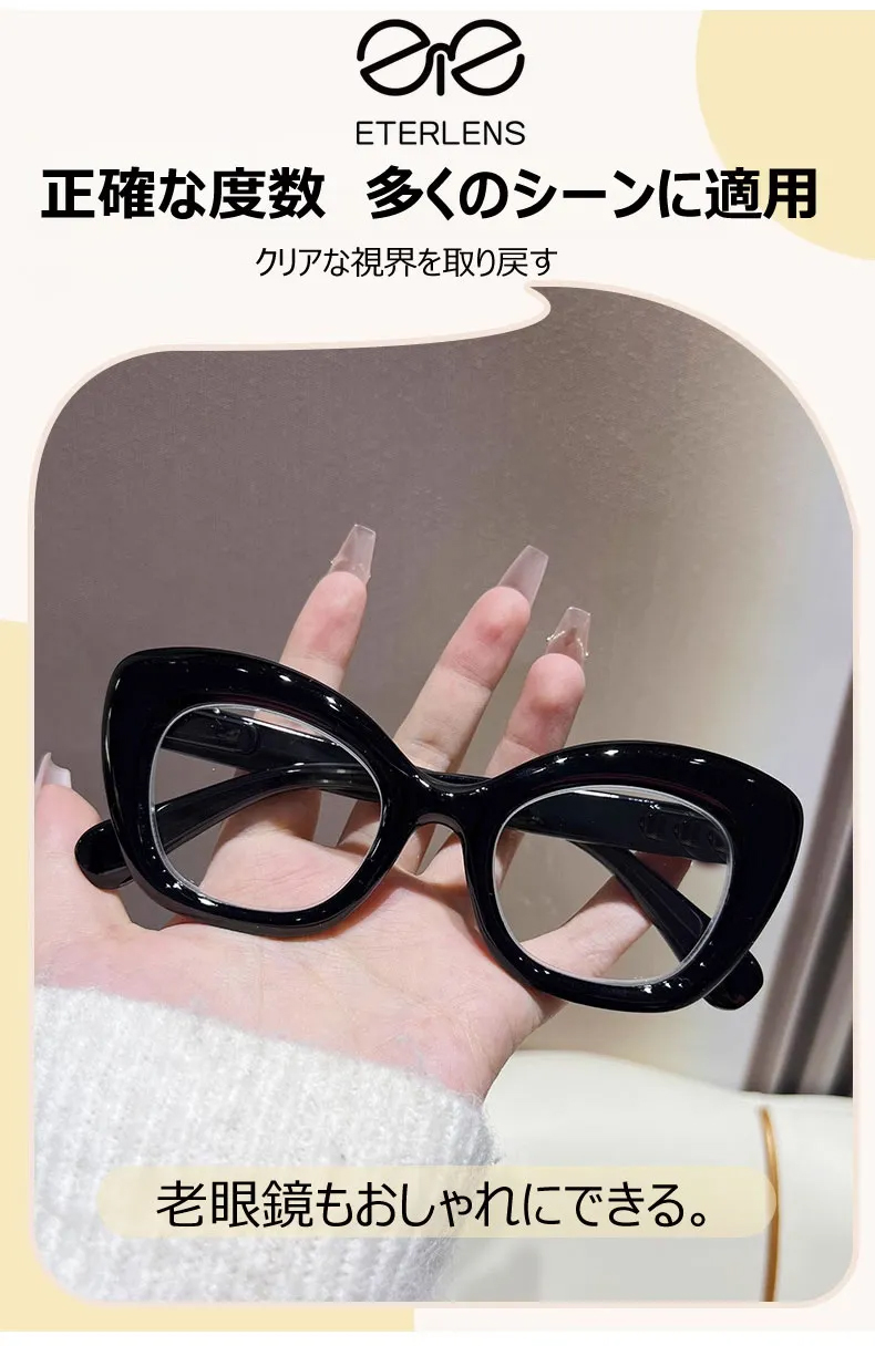 【若見え・小顔効果】Eterlens キャットアイ 老眼鏡 おしゃれ | 高弾性TR90超軽量フレーム | 上品さ漂うレディース老眼鏡