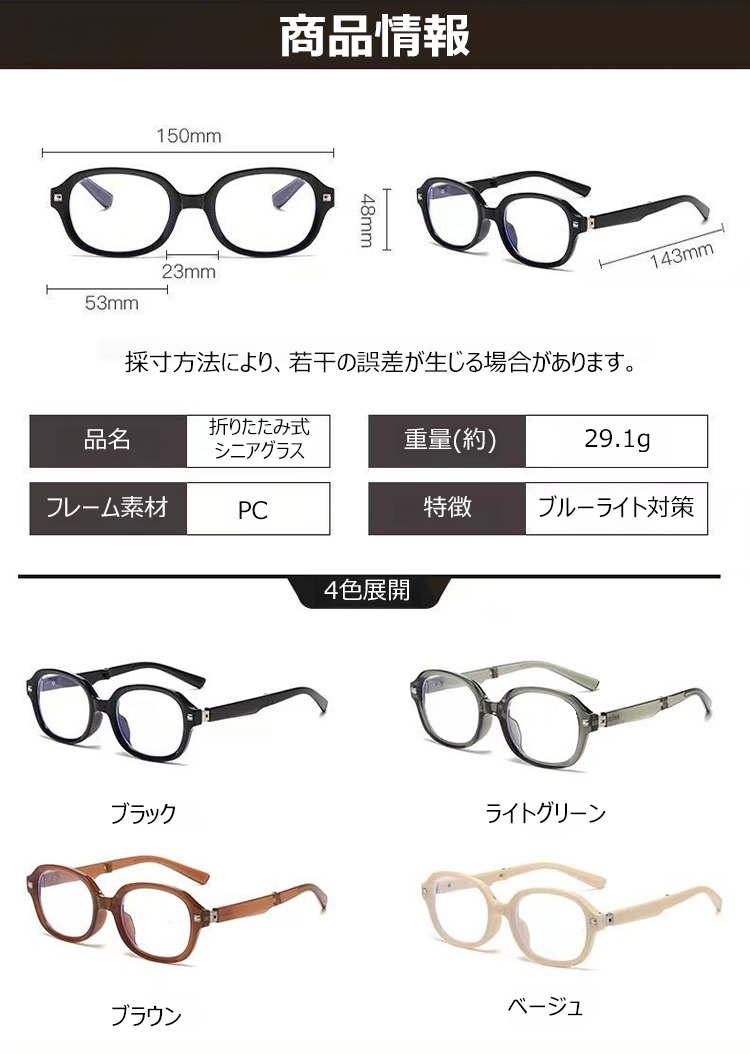 Eterlens コンパクトにしまえる 折りたたみ式シニアグラス