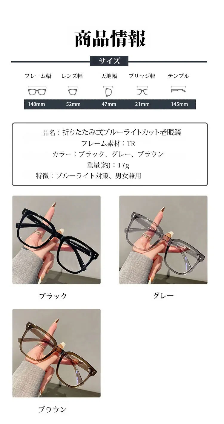 Eterlens 折りたたみ式ブルーライトカット老眼鏡