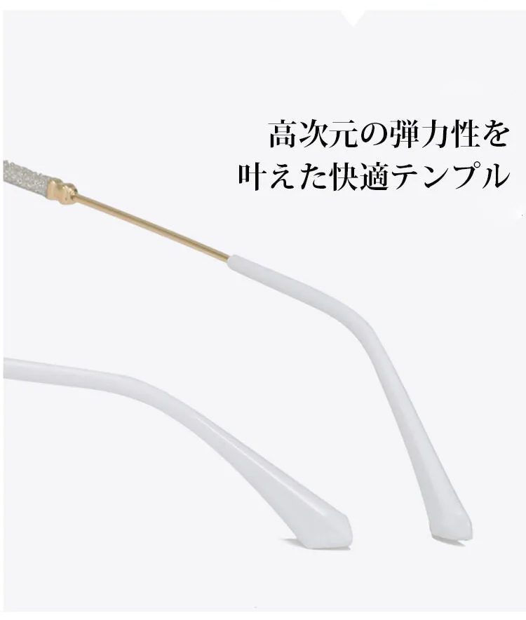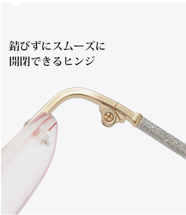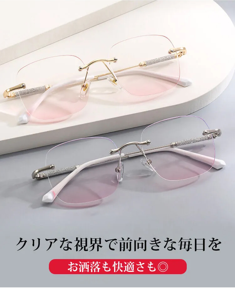 繊細なメタルフレームと淡いピンクトーンのレンズが美しく調和し、上品で女性らしい雰囲気を漂わせるリムレスメガネ。リムレスデザインが顔立ちをやさしく引き立て、軽やかで自然な美しさを演出。ビジネスにもデイリーにも馴染む、上品で洗練されたスタイルに。