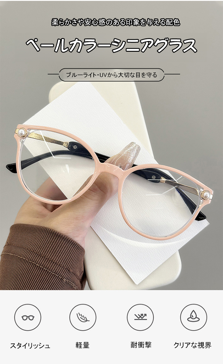 Eterlens キャットアイ ブルーライトカットレンズ搭載 ペールカラーシニアグラス