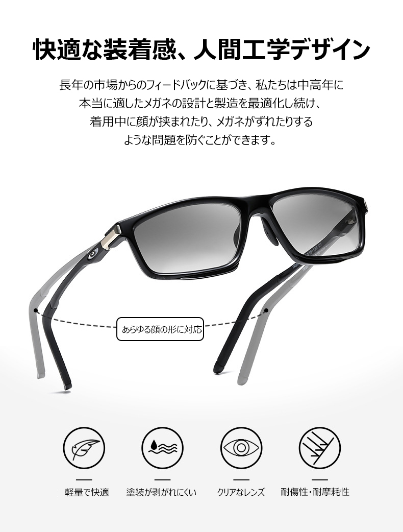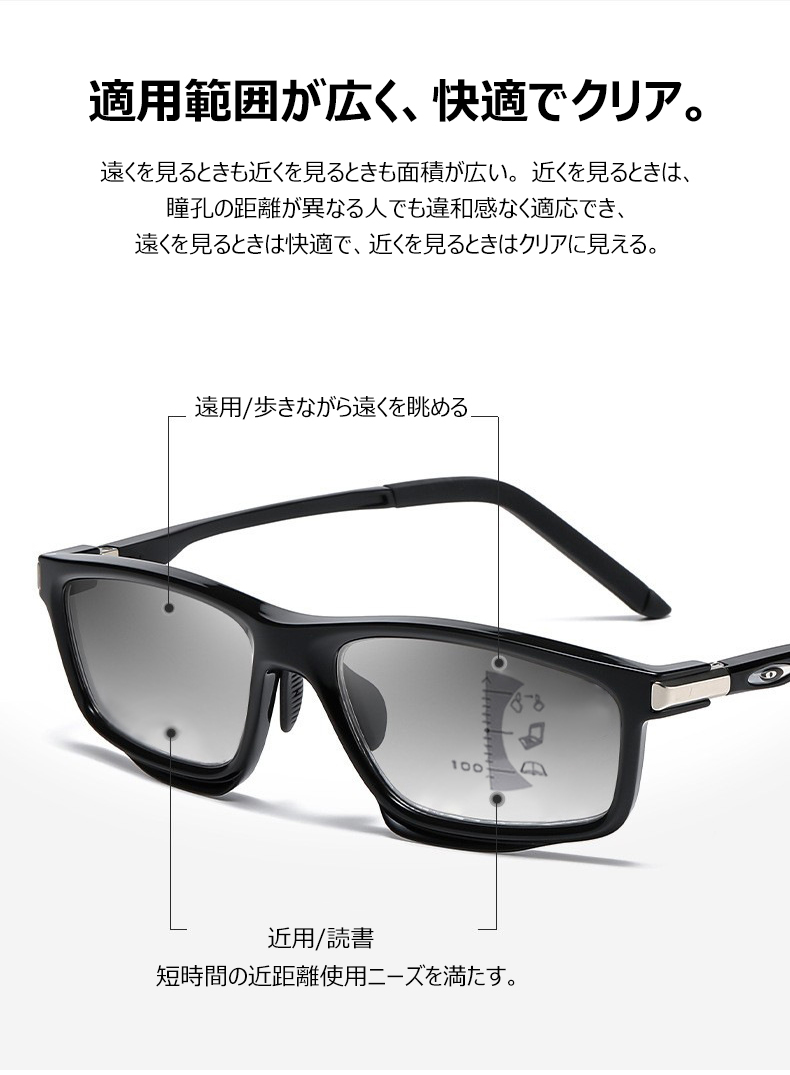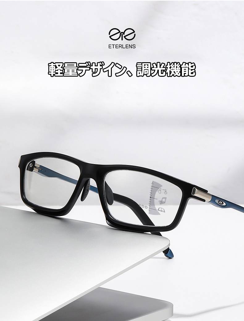 Eterlens リーディングミラー "ヴァーテックス" | 全ての機能をこの1本に集約 | 遠近両用 調光レンズ ブルーライトカット | 快適フィットの調整可能鼻パッド、滑り止め リーディングミラー