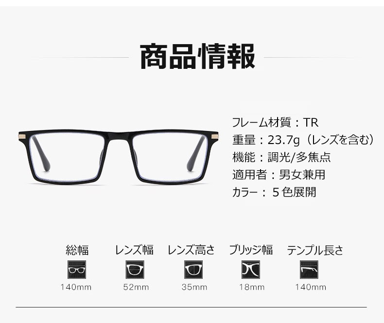 Eterlens 1本3役!遠近両用・瞬間調光サングラス【ブルーライトカット・老眼対応】