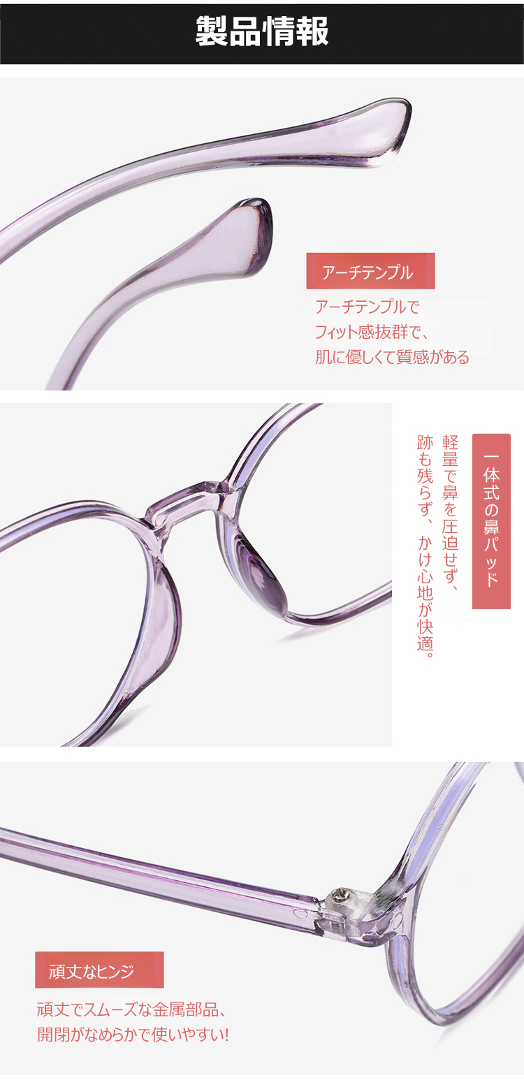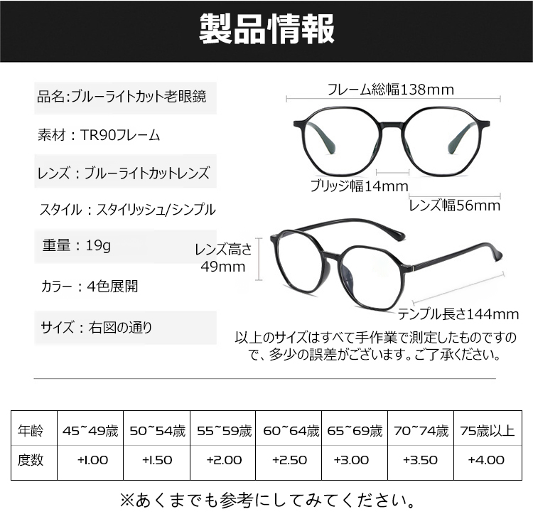 クラシックなラウンドフレームに現代的な軽やかさを融合させ、知的で洗練された印象を演出。遠近両用レンズとブルーライトカット機能を搭載し、日常のあらゆるシーンで活躍する、実用的かつスタイリッシュな一本です。