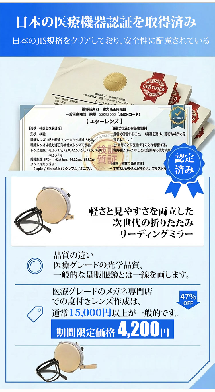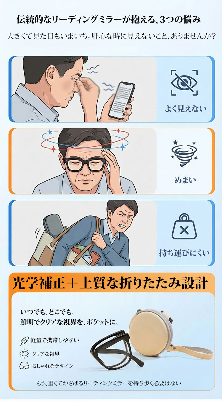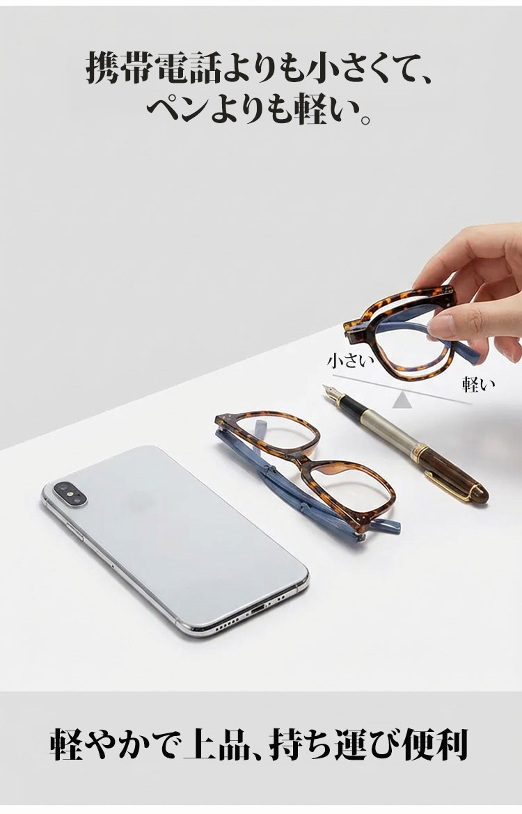 Eterlens 2WAY老眼鏡【デュアル・モード】| 掛けてはおしゃれ、畳んではコンパクト | 小顔効果の | ブルーライトカット