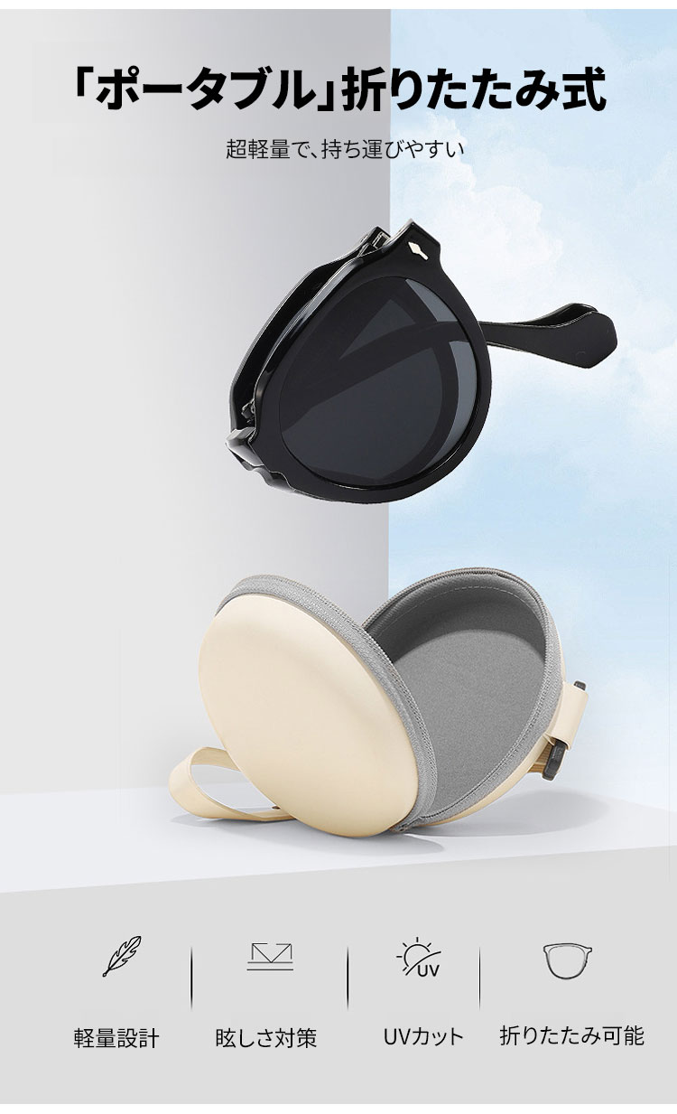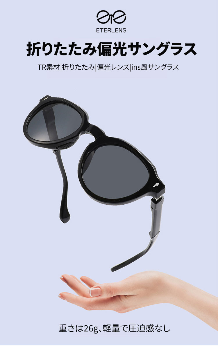Eterlens|トレンドクラウンパント型 TR素材|折りたたみ可能 偏光|ins風サングラス